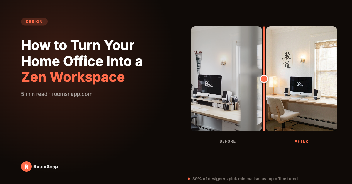 We ran a real home office through RoomSnap's AI pipeline and watched it strip away the hustle-culture clutter for focused, zen-inspired calm.